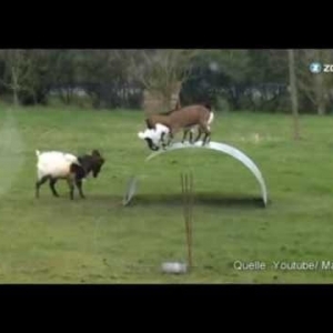 Ziegen, die auf Wellblech reiten